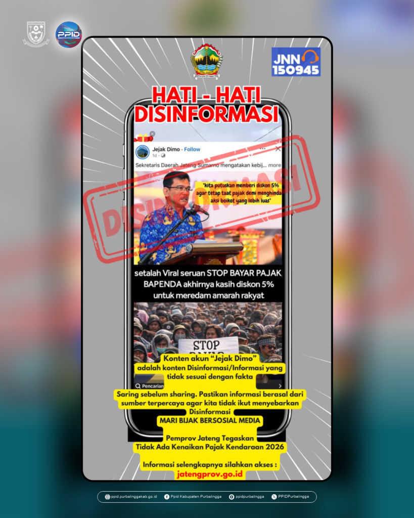 Pastikan selalu memperoleh informasi dari sumber terpercaya. Untuk informasi resmi dan klarifikasi lebih lanjut, masyarakat dapat mengakses laman jatengprov.go.id.