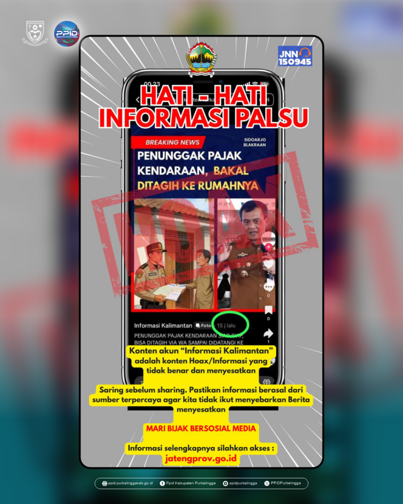 Beredar konten di media sosial yang menyebutkan bahwa penunggak pajak kendaraan akan langsung ditagih ke rumah. Informasi yang beredar tersebut tidak benar dan bersifat menyesatkan.